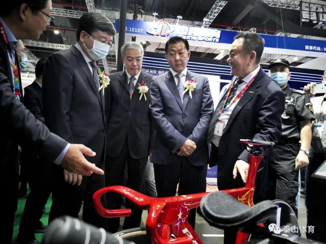 国家体育总局副局长李颖川、上海市副市长陈群、国家体育总局体育器材装备中心主任孙为民、上海市体育局局长徐彬在星空体育产业集团卞志良董事长陪同下参观星空体育展厅。